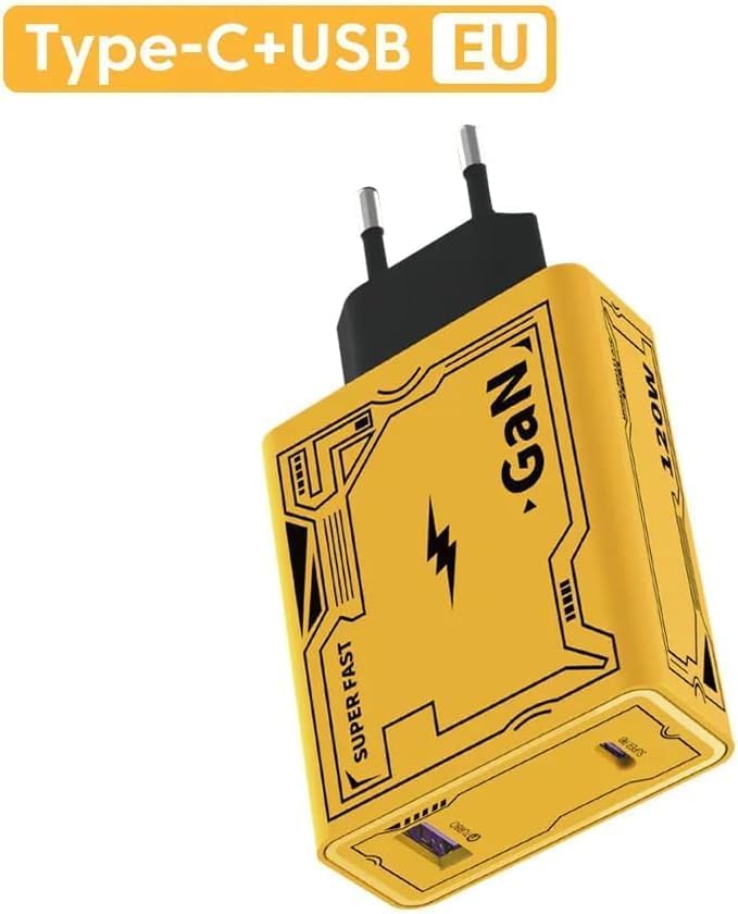 Generic - محول طاقة للشحن السريع 120 واط مع كابل شحن تيربو 2 في 1، اصفر