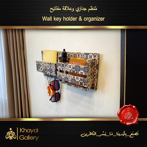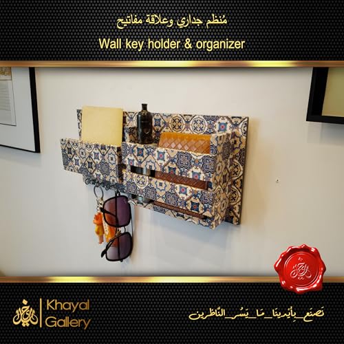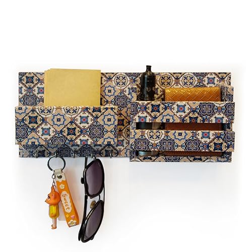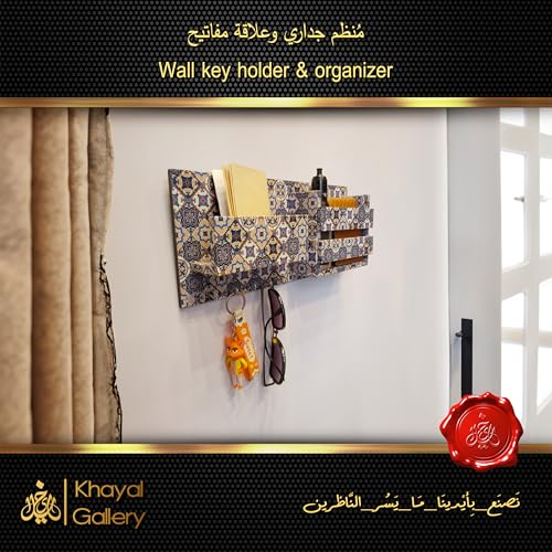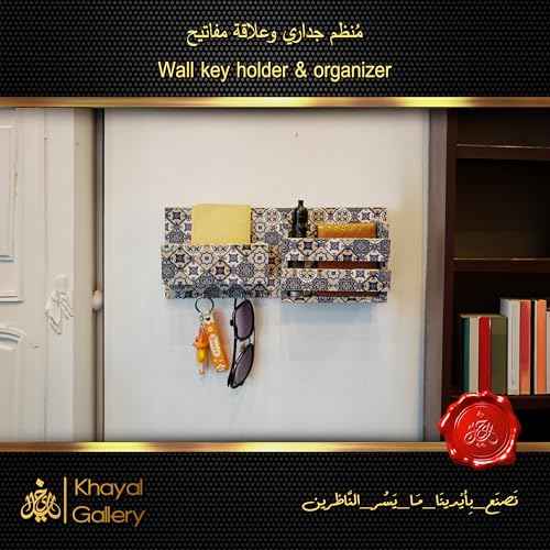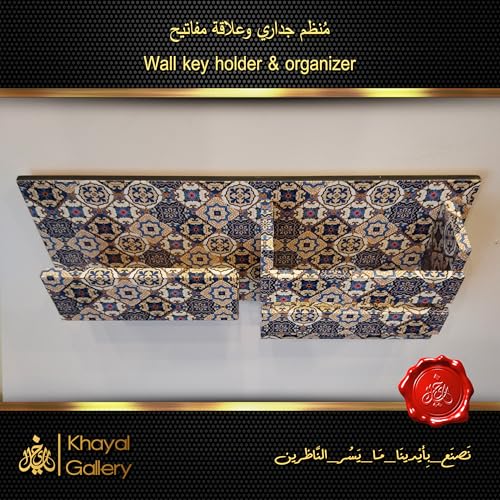 generic - منظم حائط من خشب ام دي اف 12 ملم مع علاقة مفاتيح - طباعة الية | لمسة نهائية يدوية - حامل ومنظم مفاتيح حائط حصري من خيال جاليري - مطبوع اليا | لمسة نهائية يدوية - 15 × 30 سم (ماندالا-ازرق-ابيض)