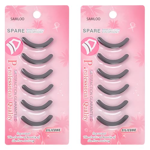 SAMLOO - 12 قطعة من وسادات اعادة تعبئة لتجعيد الرموش من مطاط السيليكون، وسادات اعادة تعبئة عالمية لتجعيد الرموش، اسود