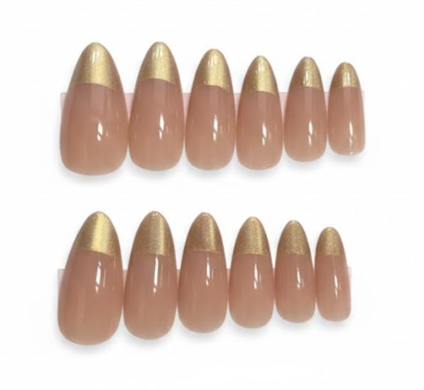 Generic - 12 قطعة من اظافر جل صناعية لامعة بتصميم نعش بيضاوي لامع لتغطية كاملة - تأتي مع ورقة وجه مزدوجة - لون ذهبي فرنسي (N2)