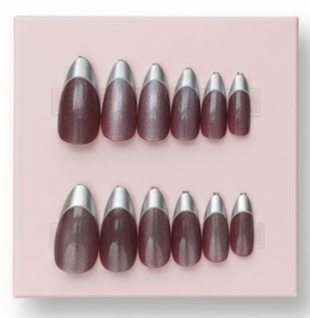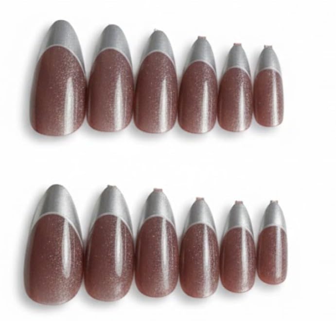 Generic - أظافر جل صناعية تركيب عن طريق الضغط، شكل بيضاوي لامع، تغطية كاملة، أطراف أظافر صناعية - تأتي مع ورقة واحدة بوجهين - لون فضي فرنسي مختلط (SILVER FRENCH MIX) (N1)، 12 قطعة