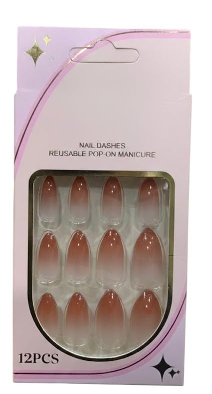 Generic - 12 قطعة من اظافر جل صناعية لامعة توضع بالضغط على الاظافر الصناعية لتغطية كاملة - تأتي مع ورقة وجه مزدوجة (ان 2)