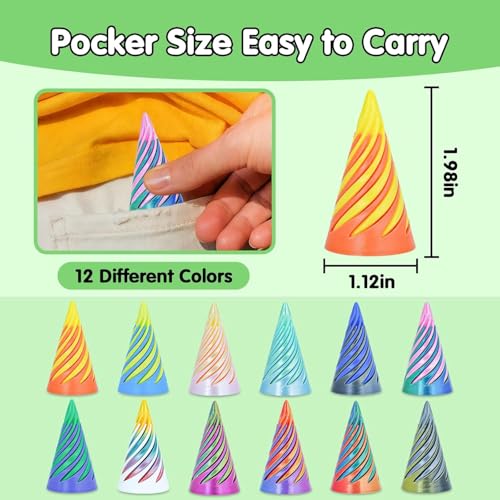 Generic - 12 قطعة من لعبة تململ الهرم المخروطي الحلزوني الصغير، مطبوعة ثلاثية الابعاد مخروط مستحيل، ديكور مكتب الوهم بخيوط دوامة صغيرة، تخفيف القلق والتوتر، هدية للبالغين والاطفال (مخروط-12 قطعة)