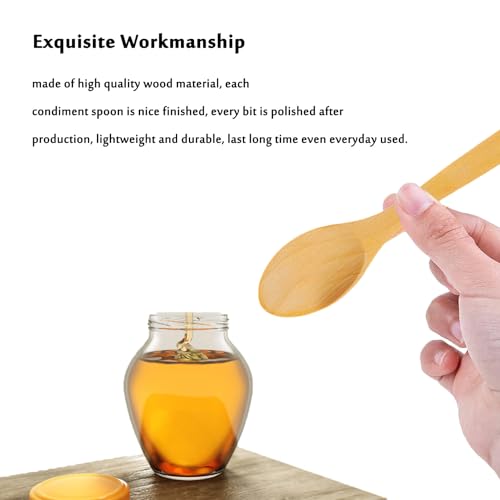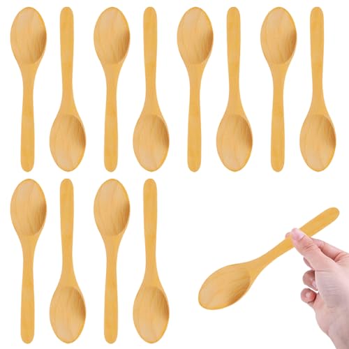 jeufun - ملعقة خشبية طبيعية صغيرة، معالق أطفال يدوية صغيرة لخلط العسل والقهوة والشاي والمربى والخردل والآيس كريم، معالق وأدوات خشبية، برطمان معالق خشبية لحفلات الزفاف والمناسبات، 12 قطعة