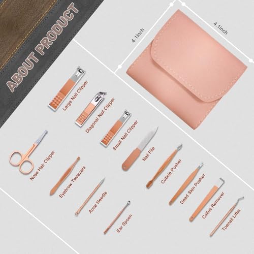 - COMPLETE 12-PIECE GROOMING KIT – This manicure and pedicure set includes a carefully selected range of nail care and grooming tools designed for hands, feet, and facial care. Instead of buying multiple accessories, this all-in-one personal care kit provides everything needed to trim nails, manage cuticles, and maintain neat grooming. Ideal for daily hygiene routines at home, travel grooming kits, or quick touch-ups when you want to keep your nails and skin looking clean and well maintained.