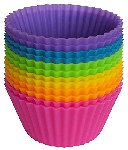 Generic - 12 قطعة من أكواب الخبز المستديرة القابلة لاعادة الاستخدام من السيليكون لصنع الكيك والمافن والشوكولاتة والكب كيك
