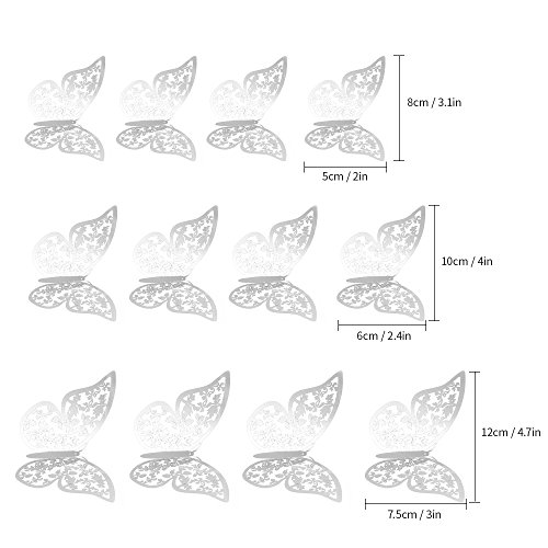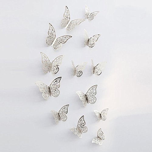 Other - 12 قطعة / المجموعة 3D ملصقات الحائط على شكل فراشة ملصقات جدارية قابلة للإزالة اصنعها بنفسك ملصقات جدارية فنية ديكور مع غراء، فضي