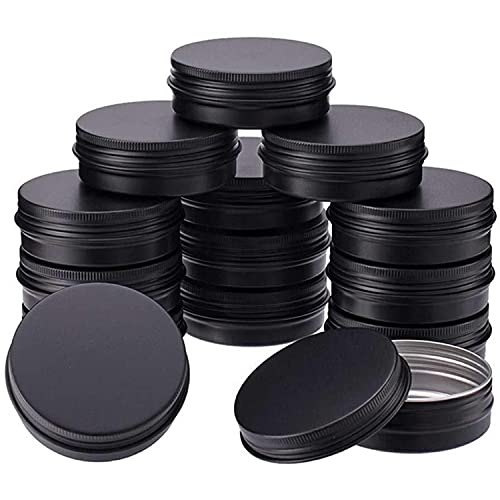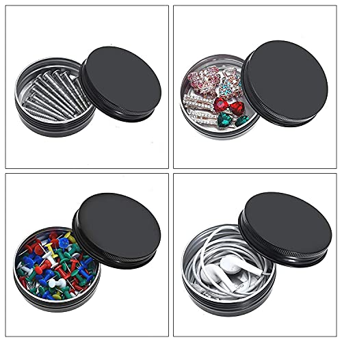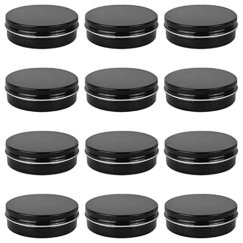 Sturmm - اوعية صغيرة من الالومنيوم، 12 قطعة، مستديرة وفضية وفارغة، لعينات مستحضرات المكياج، لون اسود، 60 مل