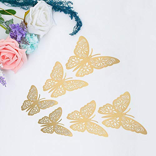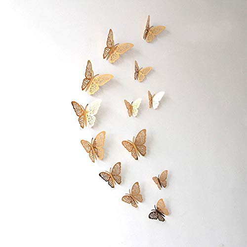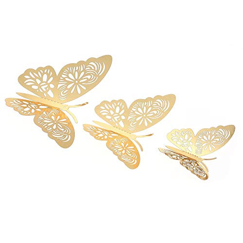 Other - 12 قطعة حية 3D الفراشة ملصقات الحائط القابلة للإزالة DIY الفن ديكور لغرفة النوم حفلة الزفاف - الذهب، ذهبي