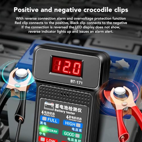 Generic - جهاز فحص بطارية السيارة 12 فولت، شاشة عرض عكسية ال اي دي BT 171 لفحص مولد السيارة، محلل بطارية رقمي بحماية متعددة للشاحنات والموتوسيكلات وسيارات الدفع الرباعي والقوارب