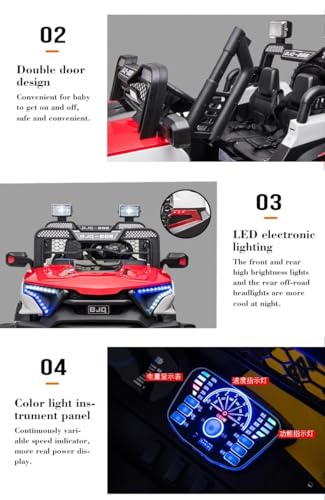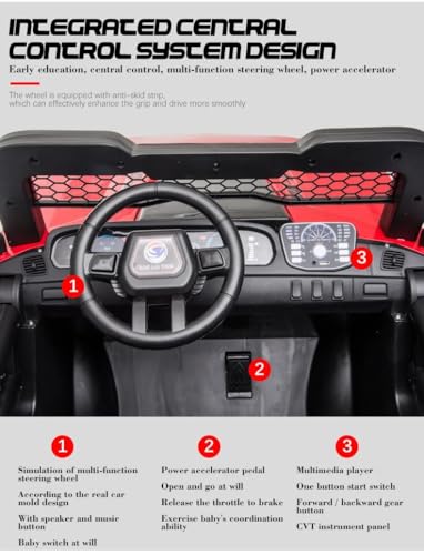 - 2: [آمن للقيادة] - يتضمن المحرك القوي آلية بدء بطيئة لاستخدام أكثر أمانًا. تتيح مصابيح LED الساطعة في القيادة الآمنة أثناء الليل. تم تصميم عجلة القيادة للسماح بتغييرات طفيفة في الاتجاه، مما يقلل من خطر الانقلاب العرضي ويضمن تجربة قيادة آمنة.