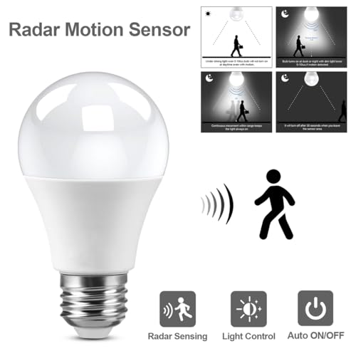 Generic - لمبة إضاءة LED بقوة 12 واط ذاتية الإغلاق بمستشعر حركة راداري. إضاءة بيضاء نهارية بدرجة 6500 كلفن وقوة سطوع 1800 لومن. لمبة بتصميم E27 لولبية، مناسب للاستخدام في المنزل، غرفة النوم، المطبخ، المكتب