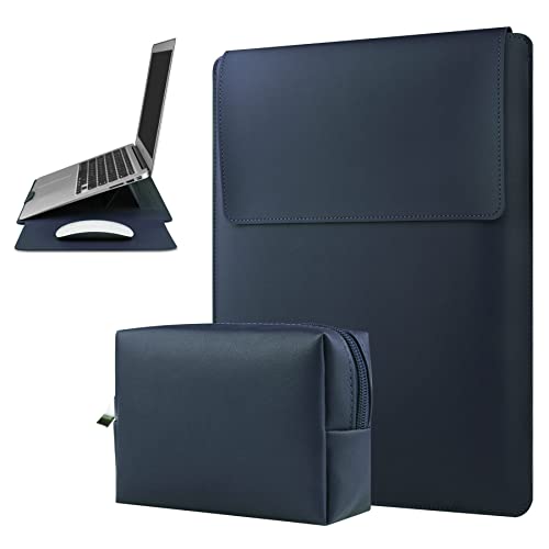 Jfadg - حافظة لاب توب من الجلد مقاس 13-14 انش متوافقة مع ماك بوك اير برو سيرفس ديل اكس بي اس، شنطة لابتوب واقية انيقة نحيفة ومتينة مع بطانة ناعمة مثالية للمكتب والعمل والسفر، ازرق كحلي