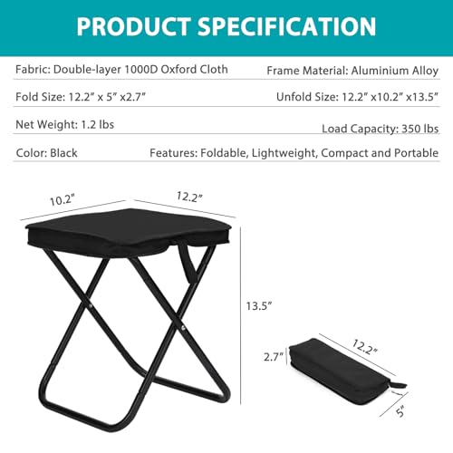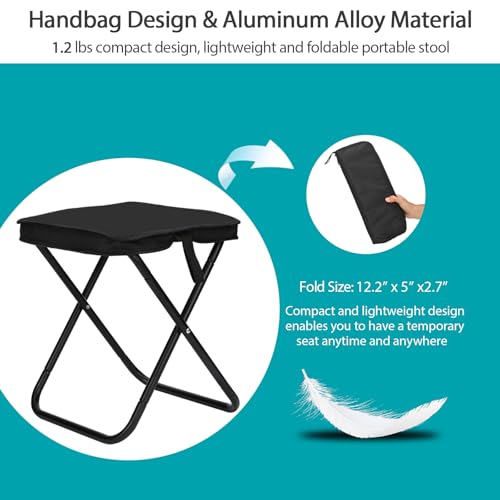 Spisces - مقعد قابل للطي خفيف الوزن من الالومنيوم مقاس 13.5 انش - مقعد تخييم صغير محمول يدعم وزن 350 باوند بنمط شنطة اليد - مثالي للتخييم وصيد الاسماك وشنطة الظهر والسفر