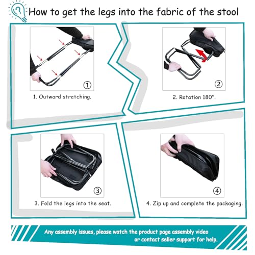 - تصميم حقيبة يد قابلة للطي: يمكن طي هذا المقعد المحمول القابل للطي إلى حجم صغير للغاية 12.2 انش طول × 5 انش عرض × 2.7 انش ارتفاع - يمكن استخدام المقعد المصنوع من قماش اوكسفورد 1000D كحقيبة حمل للسفر دون عناء.