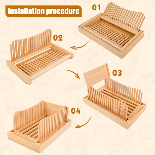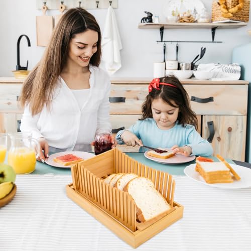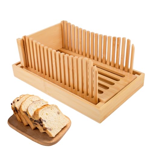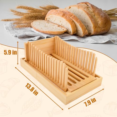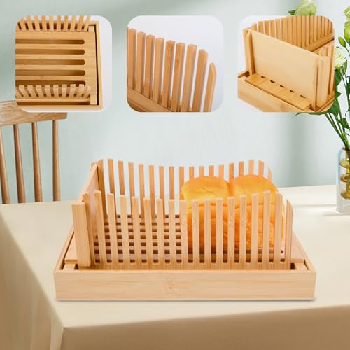 Tefrine - قطاعة خبز منزلية الصنع مقاس 35 × 21.8 × 3.81 سم، دليل تقطيع خبز مدمج وصينية فتات خبز غير قابلة للانزلاق، قطاعة خبز قابلة للطي للخبز محلي الصنع، حل مثالي لتقطيع العجين المخمر بـ3 خيارات للسمك