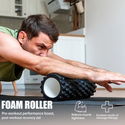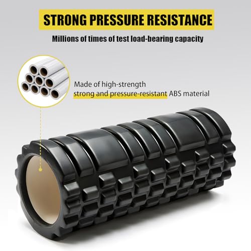 YaSeim - بكرة فوم ايفا مقاس 13 انش للظهر والساقين - جهاز تدليك الانسجة العميقة عالي الكثافة لاستعادة العضلات وتحرير نقطة الزناد الليفي العضلي، يخفف العضلات الضيقة والمقرحة، ويحسن الحركة (اسود)