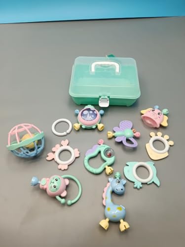 Generic - مجموعة خشخيشة وعضاضة للاطفال مكونة من 13 قطعة مع صندوق تخزين