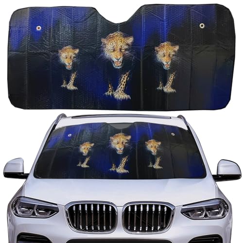 Generic - شماسة سيارة لزجاج السيارة الامامى للحماية من الاشعة فوق البنفسجية والحرارة، مظلة حماية عاكسة قابلة للطي وجة اشكال ورسومات ووجة اخر فضى مقاس 130 فى 60 سم كود 7526 نمر - من كابر مصر 2020