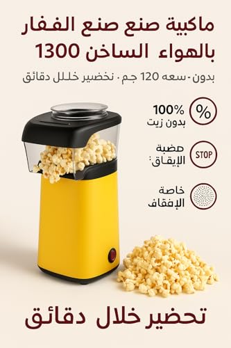 Generic - ماكينة صنع الفشار بالهواء الساخن 1300 واط – بدون زيت – سعة 120 جم – تحضير خلال 3 دقائق – تصميم أنيق وصحي للمنازل والحفلات