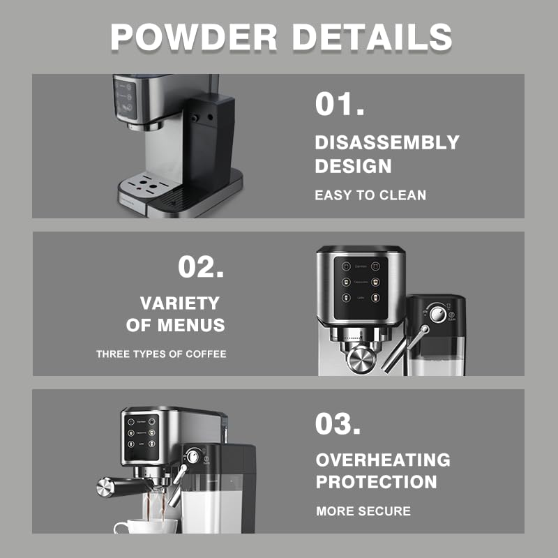 - 🔄 تنظيف سريع وصيانة سهلة – أجزاء قابلة للإزالة مثل خزان المياه والحليب وصينية التقطير لسهولة التنظيف اليومية.