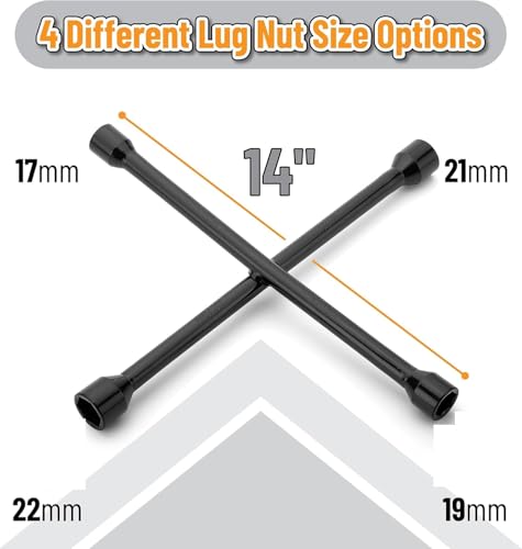 Generic - مفتاح صليبه 14بوصه لفك اطارات السيارات مخصص لجميع السيارات لون اسود مقاسات 17-19-21-23 مم ماركه وايزمان