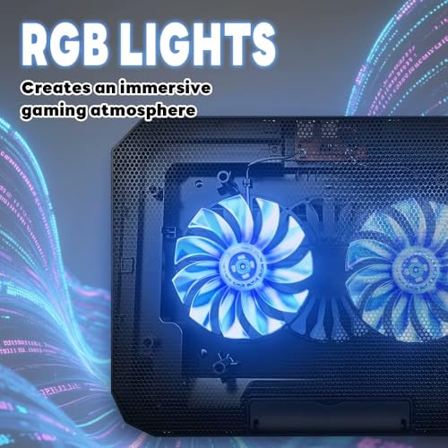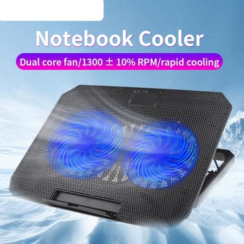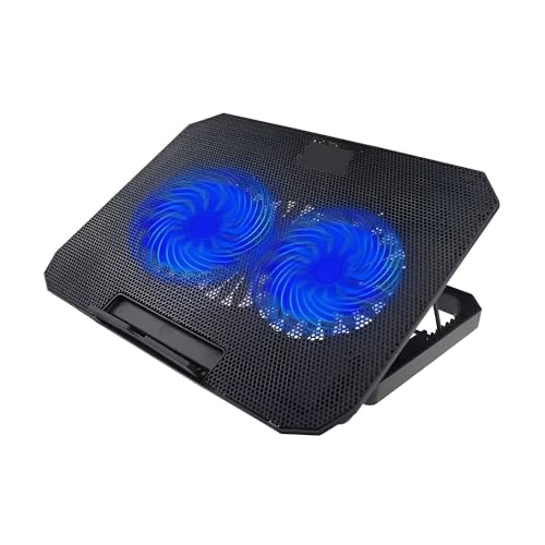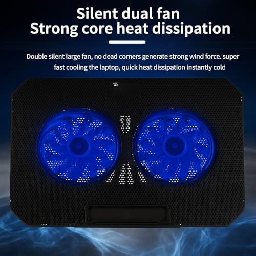 Generic - مبرد لاب توب بمروحتين صامتتين 14 سم باضاءة LED - ارتفاع قابل للتعديل حتى 8 مستويات - منفذ USB - موديل UC-600