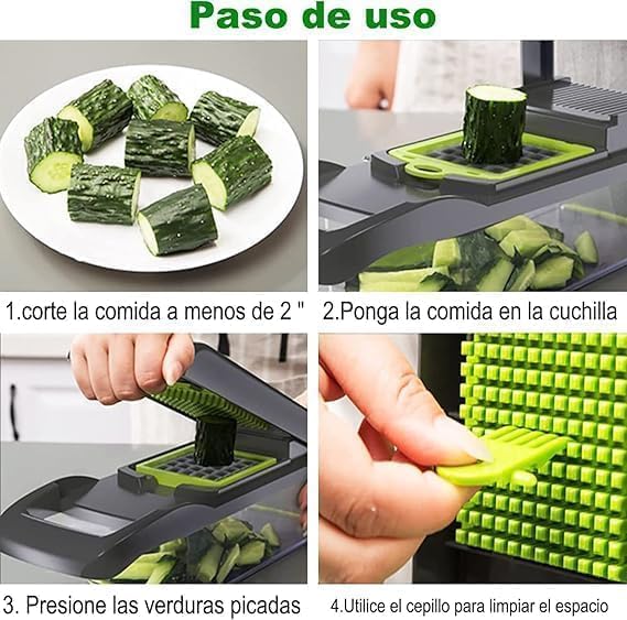 - شفرات حادة: شفرات فولاذية عالية الجودة قابلة للتبديل لتقطيع دقيق ومتناسق للخضروات والفواكه