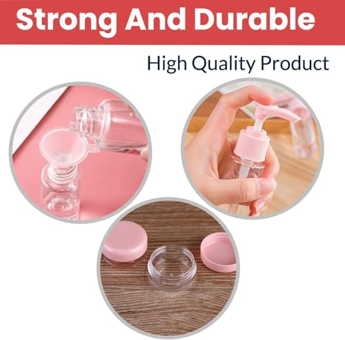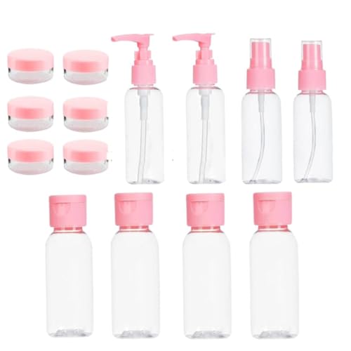 - مجموعة كاملة من 14 قطعة: تتضمن زجاجتي مضخة وزجاجتي رش و4 زجاجات ضغط بغطاء قلاب و6 برطمانات كريم صغيرة - مجموعة صغيرة للسوائل والكريمات.