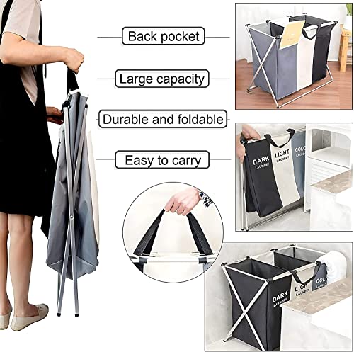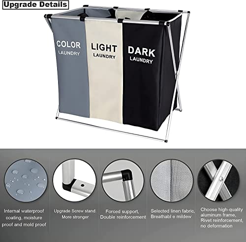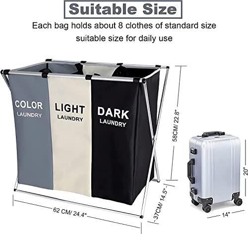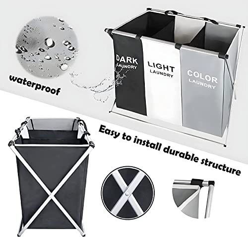 Spaceshoop - سلة فرز الملابس قابلة للطي من 3 أقسام مع إطار من الألومنيوم، شنطة تخزين الملابس المتسخة للحمام وغرفة النوم والمنزل، مقاس 66 × 38 × 58 سم (سعة 145 ل، ثلاثة ألوان)