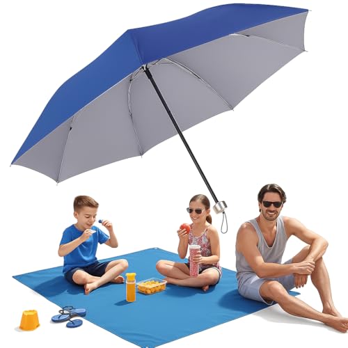 Generic - مفرش شاطئ بحجم الجيب 145×195 سم + مظلة قابلة للطي مقاومة للرياح – طقم رحلات مثالي للتخييم والنزهات والسفر، خفيف الوزن، مقاوم للماء والشمس، مناسب لجميع أفراد العائلة