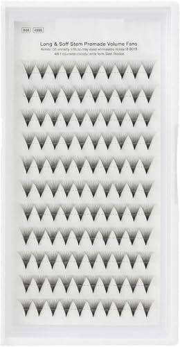 - مراوح تمديد الرموش حجم 14 دي مسبقة الصنع (9 ملم): تتميز كل مروحة بـ 14 رمش فائقة النعومة متصلة بجذع طويل ناعم للحصول على كثافة أكثر امتلاءً وانتفاشًا دون إضافة وزن إلى الرموش الطبيعية.