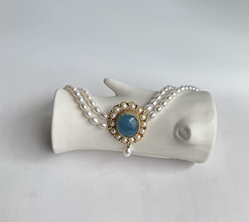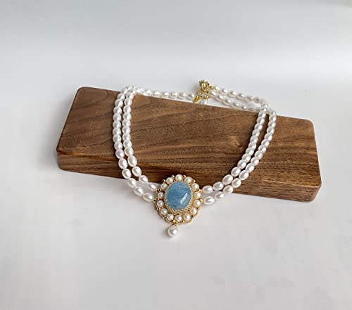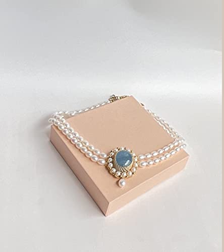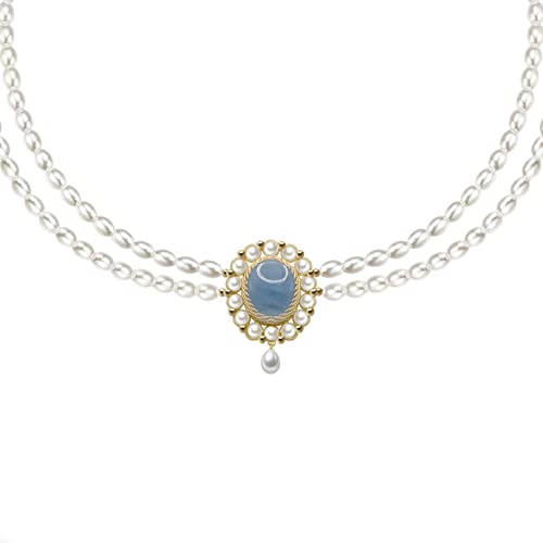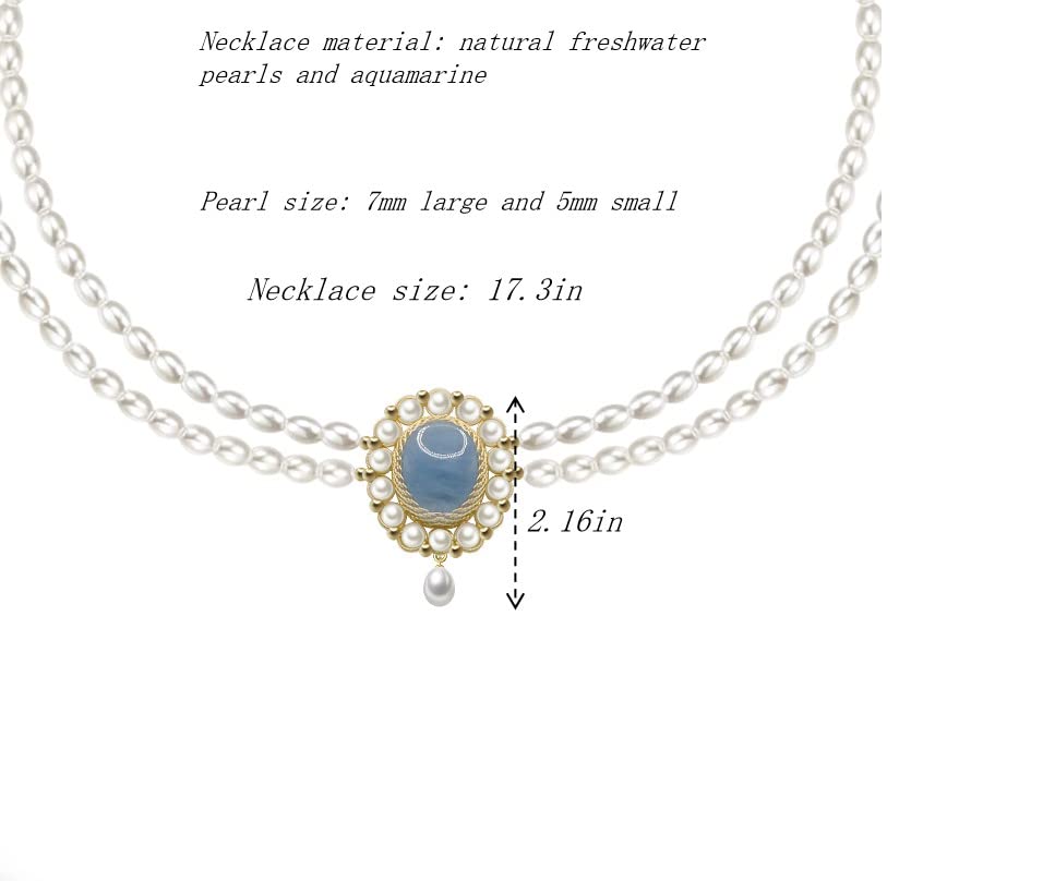 Generic - عقد للنساء مطلي بالذهب عيار 14 قيراط من لؤلؤ المياه العذبة الطبيعية، هدية مجوهرات عصرية 17.3 بوصة بالإضافة إلى سلسلة تمديد 0.95 بوصة