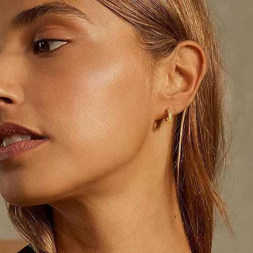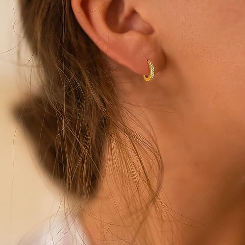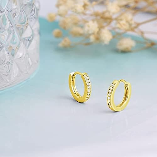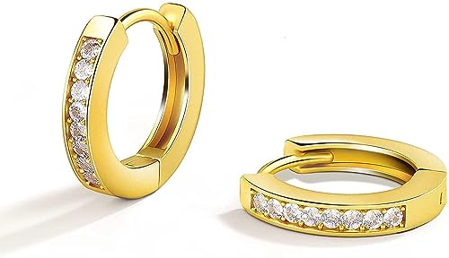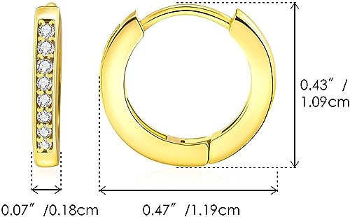 Generic - حلق صغير مطلي بالذهب عيار 14 قيراط- مجوهرات غضروف مزين بفصوص زركونيا مكعبة ذهبية لامعة 12 ملم- مجوهرات انيقة مضادة للحساسية للبشرة الحساسة للبنات الصغيرات من تو ستايلش