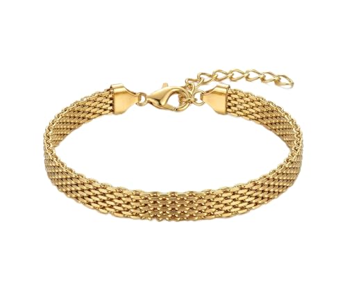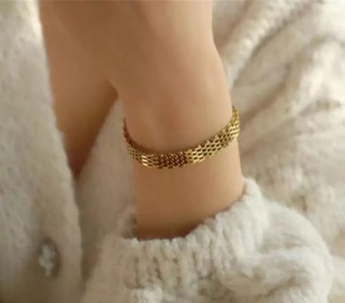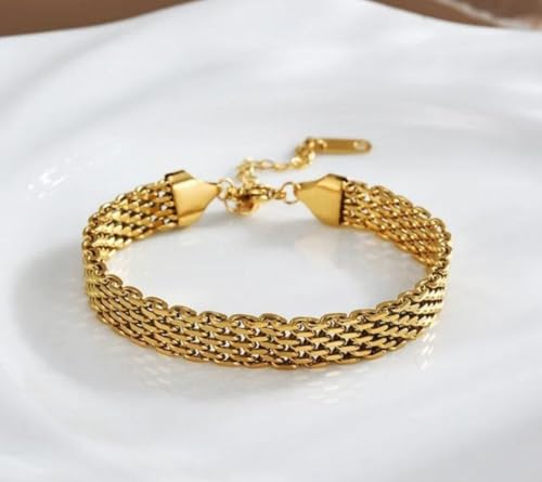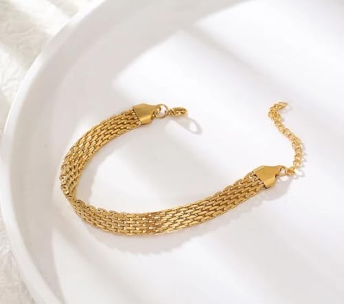 Generic - سوار استانلس ستيل حريمي شبكي منسوج مطلي بالذهب عيار 14 سوار بتصميم أوروبي عصري مقاوم للصدأ وتغير اللون، لا يسبب حساسية، قابل للتعديل