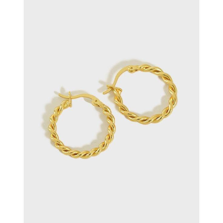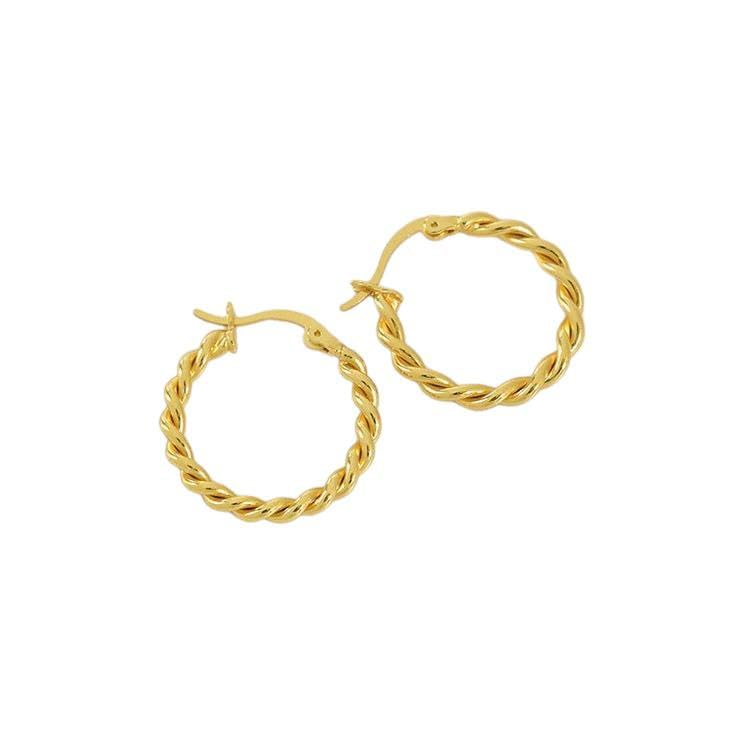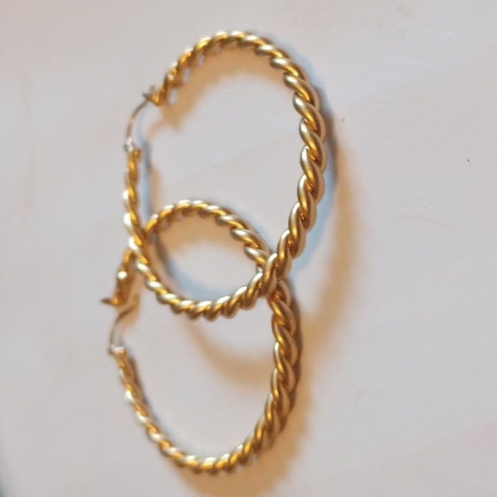 Generic - اقراط حلقية ملتوية من الذهب عيار 14 قيراط قطر 5 سم ستانلس ستيل للنساء