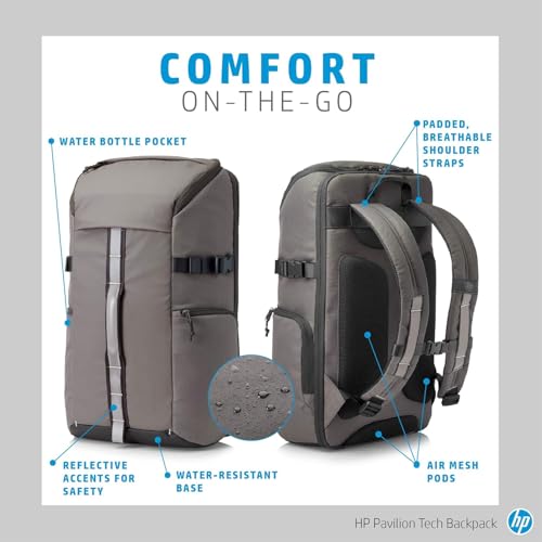 Generic - شنطة ظهر بافيليون تيك بلون رمادي مقاس 15.6 انش (5EF02AA)