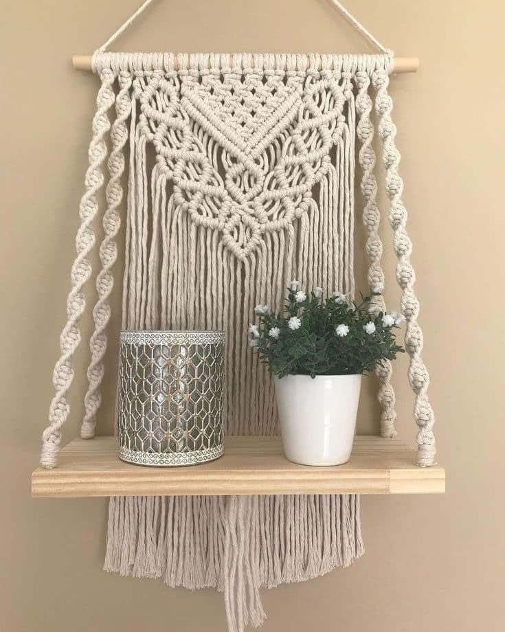 Generic - مكرمية برف تعليق بعرض 40 سم × ارتفاع 50 سم، خشب مصنع، خيوط قطنية
