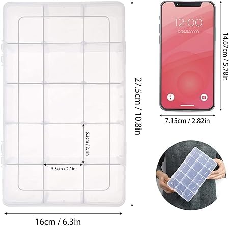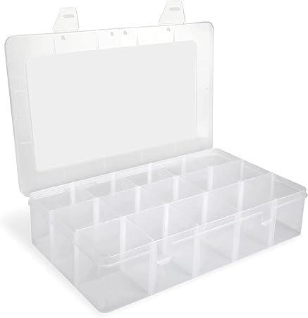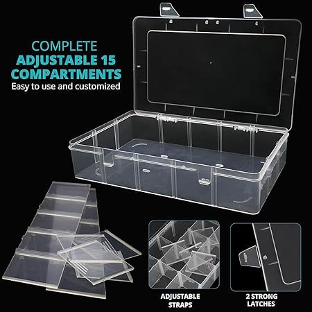 Generic - صندوق تخزين شفاف متعدد الاستخدام 15 خانة – منظم بلاستيك قابل للتعديل مع فواصل قابلة للإزالة للأدوية والإكسسوارات والخرز وأدوات الخياطة