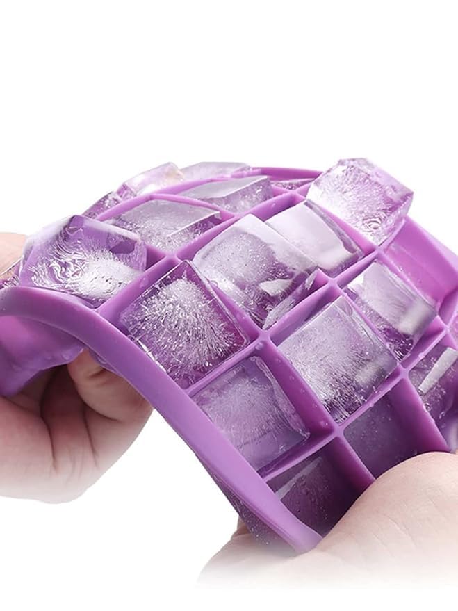- 🌀 سيليكون مرن وسهل الإخراج: الخامة السيليكون بتخلي إخراج مكعبات التلج أسهل من أي وقت، بدون ما تحتاجي تضربي القالب أو تكبسي عليه بقوة. بس ضغطة خفيفة وتطلع المكعبات بسهولة