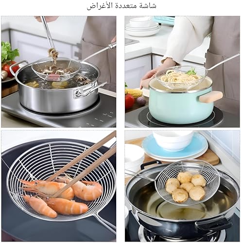 - مصفاة العنكبوت المصنوعة من الفولاذ المقاوم للصدأ مقاس 15 بوصة هي أداة المطبخ المثالية للقلي العميق وتصفية الأطعمة المفضلة لديك، بما في ذلك البطاطس المقلية والأسماك المخفوقة والدجاج المقلي واللحوم والخضروات المختلفة. يحمي مقبضها الطويل يديك من الرشاشات، مما يضمن طهيًا آمنًا حتى مع الزيت الساخن، مما يجعلها ضرورية لأي متحمس للطهي يحب تحضير الأطعمة المقرمشة.