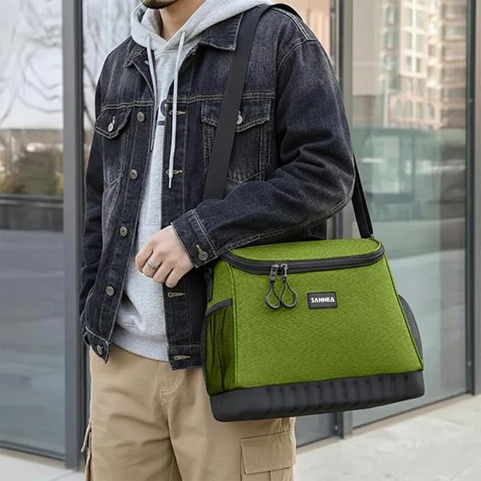 Generic - شنطة تبريد حرارية كبيرة سعة 15 لتر - حامل طعام معزول مقاوم للماء مع حزام كتف قابل للتعديل - تخزين ساخن وبارد للعمل والمدرسة والسفر والنزهات - موديل BB-518 (اخضر)