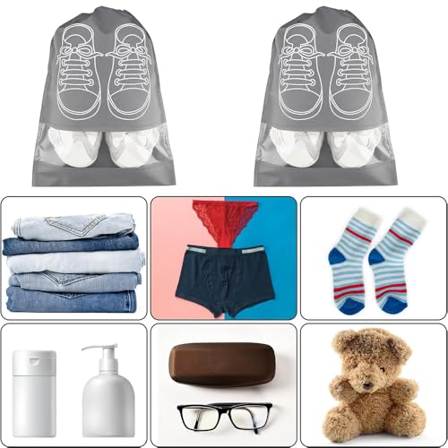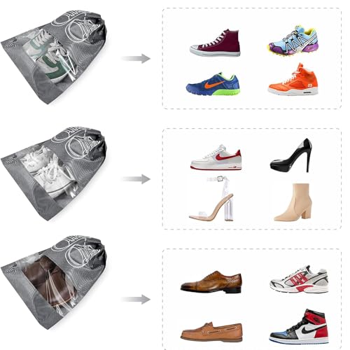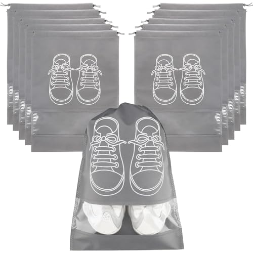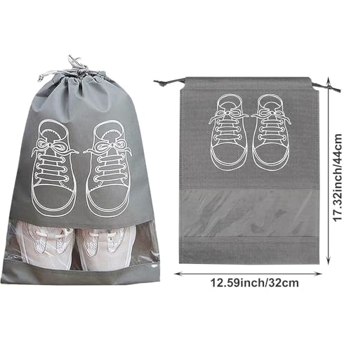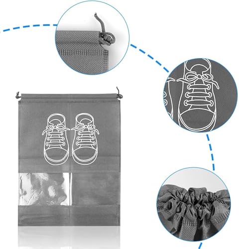 LENDIS - 15 قطعة من حقائب الاحذية للسفر 17.3 انش × 12.6 انش، شنطة احذية محمولة للسفر، شنطة تخزين احذية محمولة مع حبل (رمادي)