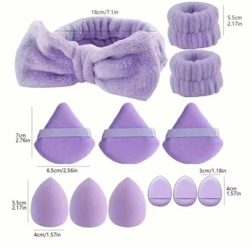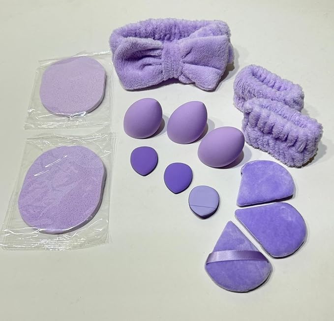 Generic - مجموعة ادوات وضع المكياج مكونة من 15 قطعة مع اسفنجات ووسائد للوجه وشريط شعر وشريط معصم (ارجواني)