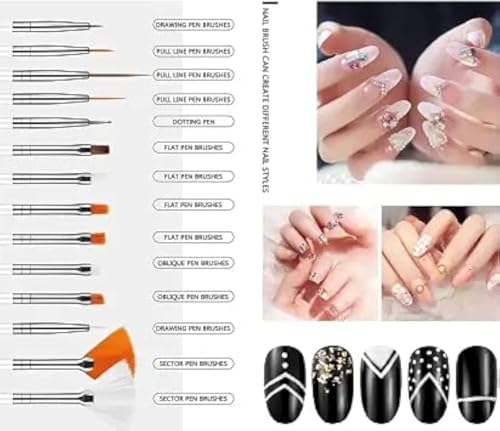 Generic - مجموعة فرش طلاء الأظافر من 15 قطعة متعددة الوظائف من الاكريليك لجل الأشعة فوق البنفسجية وصالونات التجميل والاستخدام المنزلي واكسسوارات الأظافر