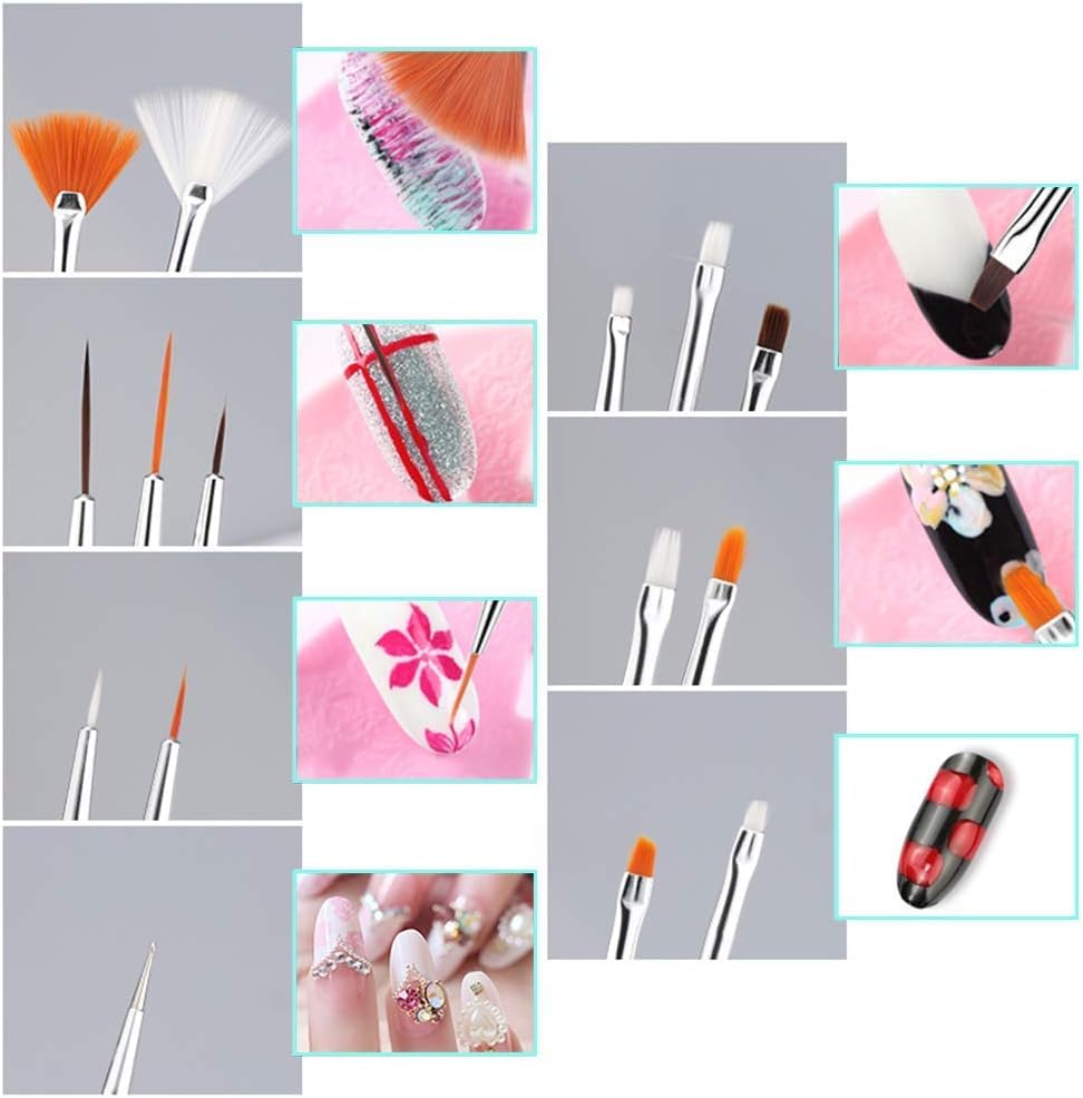 - احصلي على تصميمات احترافية لفن الأظافر في المنزل أو في صالونك. سواء كنت تقني الأظافر أو المبتدئ، فإن مجموعة فرش الأظافر الخاصة بنا تسمح لك بابتكار خطوط مذهلة وزهور ودوامات وتفاصيل معقدة. لا غنى عنه لأي فنان أظافر يتطلع إلى الارتقاء بحرفته إلى المستوى التالي.