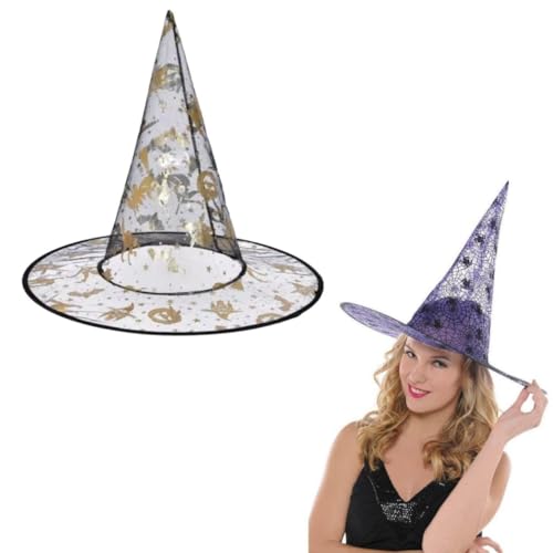 Generic - قبعة ساحرة للاولاد والبنات مقاس 38 × 35.6 سم بتصميم اشكال الهالوين تصميم مدبب للارتداء في حفلات الهالوين والحفالات التنكريه