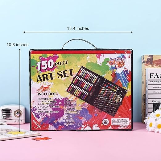 Generic - مجموعة لوازم فنية فاخرة للاطفال مكونة من 150 قطعة، اقلام تلوين ملونة بالوان باستيل وزيت باستيل للمبتدئين والاطفال مناسبة للرسم وهدايا عيد الميلاد (اسود)