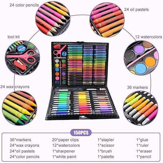 - مجموعة لوازم فنية فاخرة للأطفال مكونة من 150 قطعة، أقلام تلوين ملونة وزيت باستيل أقلام تلوين مائية للمبتدئين والأطفال مناسبة للرسم وهدايا عيد الميلاد (اسود)