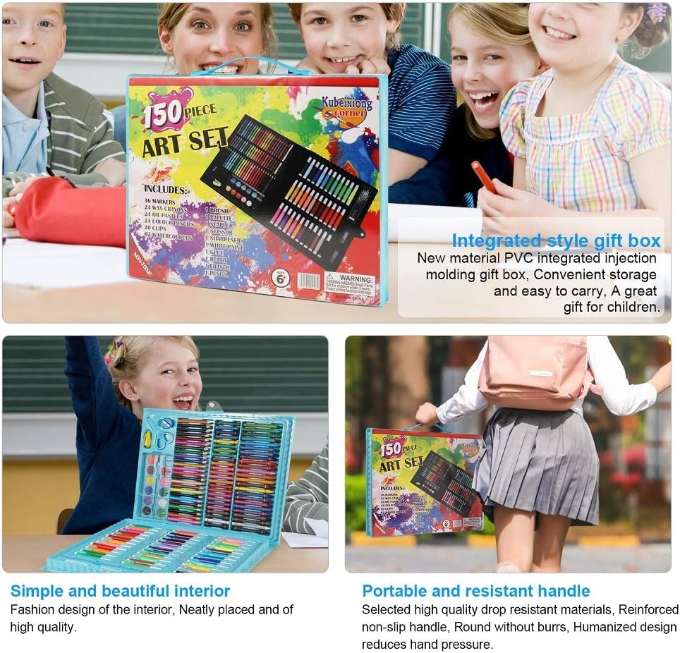 Generic - طقم رسم احترافي 150 قطعة للفنانين والهواة شنطة ألوان متكاملة وتلوين عالية الجودة تشمل أقلام خشب باستيل زيتي، ماركر وألوان مائية مثالي لرسم البورتريه والمناظر الطبيعية
